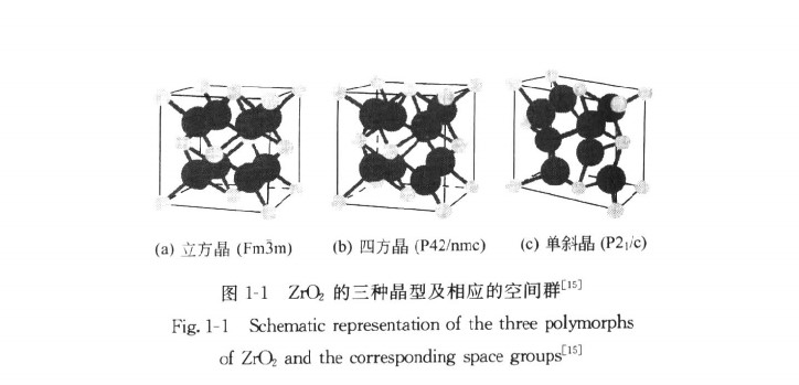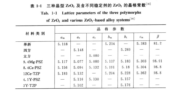 三種晶型的氧化鋯及含不同穩(wěn)定劑的氧化鋯的晶格常數(shù)見表1-1