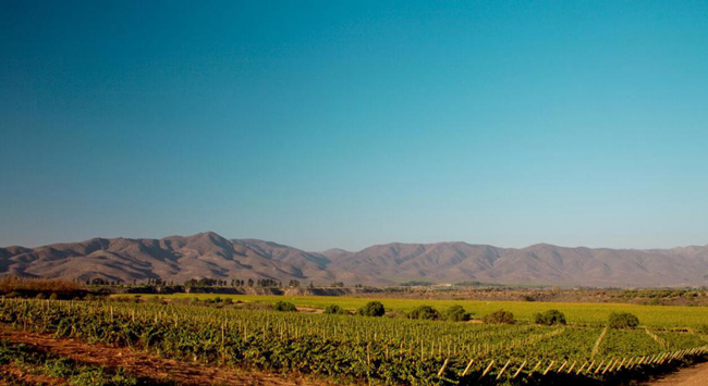 明朗如鏡的天空,映襯著連綿起伏的山丘,偶爾可見仙人掌、山楂樹和其它一些低矮的灌木叢,而在山谷之地,卻分布著成片的葡萄園,綠色的葡萄葉、黃色的土地與藍(lán)色的天空交相輝映,這就是阿塔卡馬沙漠(Atacama Desert)南部的風(fēng)光,著名的利馬里谷(Limari Valley)產(chǎn)區(qū)便坐落于此。