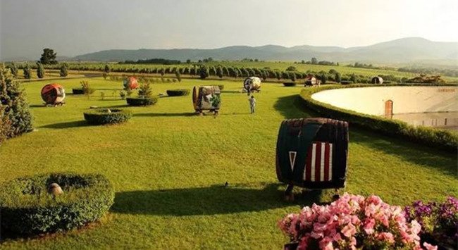 格魯吉亞葡萄酒釀造工藝獨(dú)具特色,雖然也運(yùn)用歐洲釀酒方式,但很多酒莊仍沿用著最為傳統(tǒng)的“克韋夫利”(kvevri)釀酒法。這種圓錐型的特制陶罐,容量可達(dá)3000-5000升,裝滿葡萄汁后埋入圖中,只將罐口露出地面,埋入土中的罐子就可使葡萄汁在適宜溫度下發(fā)酵,并且使葡萄酒在良好狀態(tài)下保存相當(dāng)長(zhǎng)時(shí)間。