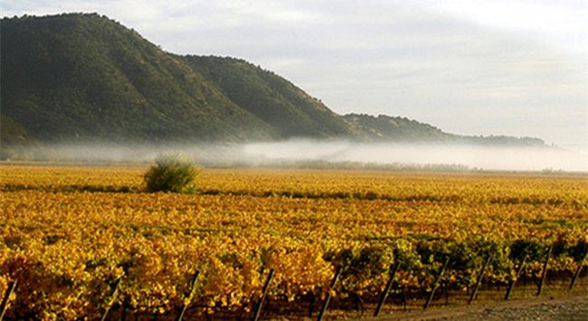 卡恰布谷(Cachapoal Valley)和空加瓜谷(Colchagua Valley)均為中央山谷(Central Valley)的子產(chǎn)區(qū),后者還曾被《葡萄酒愛好者》(Wine Enthusiast)雜志評(píng)為“年度葡萄酒產(chǎn)區(qū)(Wine Region of the Year)”。卡恰布谷以種植紅葡萄品種為主,其中赤霞珠(Cabernet Sauvignon)種植面積較廣。該產(chǎn)區(qū)吸引了不少法國(guó)的葡萄酒投資商,很多來自波爾多、盧瓦爾河谷(Loire Valley)以及阿爾薩斯(Alsace)的知名葡萄酒家族都與當(dāng)?shù)鼐粕探⒘撕献麝P(guān)系,甚至直接建起酒廠。空加瓜谷屬于地中海氣候,陽(yáng)光充足,土壤多沉積物,礦物質(zhì)含量豐富。該產(chǎn)區(qū)以優(yōu)質(zhì)的赤霞珠、佳美娜(Carmenere)、西拉(Syrah)和馬爾貝克(Malbec)著稱。