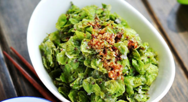 采摘后洗凈,拌上白面玉米面蒸熟就成了榆錢飯,搭配蒜汁食用,相當爽口。可以搭配酸度較高的白葡萄酒,如夏布利、德國干型雷司令等。