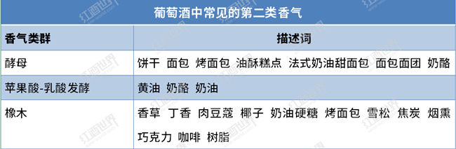 影響葡萄酒第二類香氣的主要因素是釀酒工藝,釀酒師在葡萄酒釀造中經常使用的蘋果酸-乳酸發酵(Malolactic Fermentation,簡稱為MLF)、酒泥陳釀(Sur Lie)和橡木桶發酵或陳年等工藝都會給成酒帶來香氣的變化。