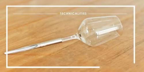 這款紅酒杯的上端設(shè)計(jì)和大家日常使用的紅酒杯相同,只不過在下端進(jìn)行了創(chuàng)新設(shè)計(jì)。在酒杯的底部,并不是傳統(tǒng)底座式設(shè)計(jì),而是采用了類似于針尖的形狀。
