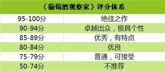 (3)《葡萄酒倡導家》采取 100 分制,起始分為 50 分,共分為 6 個檔次。