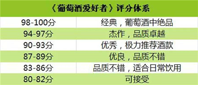 (2)《葡萄酒愛好者》采取 100 分制,起始分為 80 分,共分為 6 個檔次。