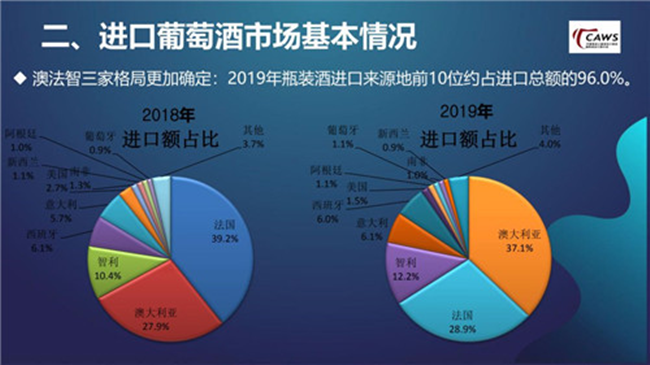 此外,進(jìn)口來源地減少,2019年瓶裝酒進(jìn)口來源地前十位約占進(jìn)口總額的96.0%。其中,又以澳大利亞葡萄酒的表現(xiàn)最為突出,在2019年以8個點(diǎn)的差距反超了法國葡萄酒,但在接下來的市場競爭中,澳大利亞葡萄酒也面臨一定挑戰(zhàn):首先,零關(guān)稅、大品牌驅(qū)動、投資移民等因素的推動作用會在階段性變化中逐漸減弱,澳洲與法國在接下來的市場中差距不會進(jìn)一步拉大;其次,意大利、智利等國葡萄酒在中國市場競爭愈加激烈化,近兩三年來,他們明顯加強(qiáng)了在中國市場的投入,處在一個比較穩(wěn)定的上升階段,我個人比較看好他們接下來的表現(xiàn)。