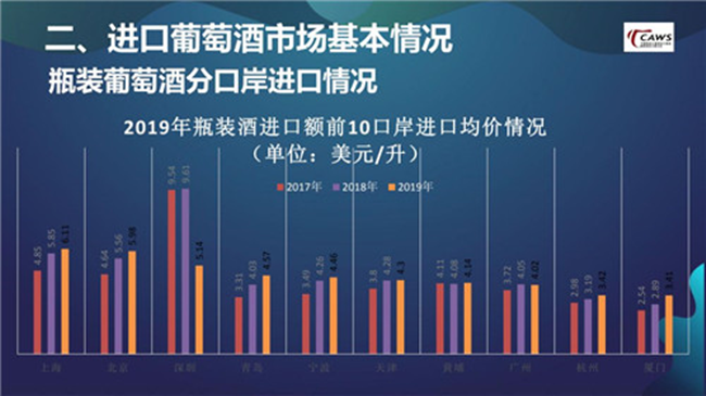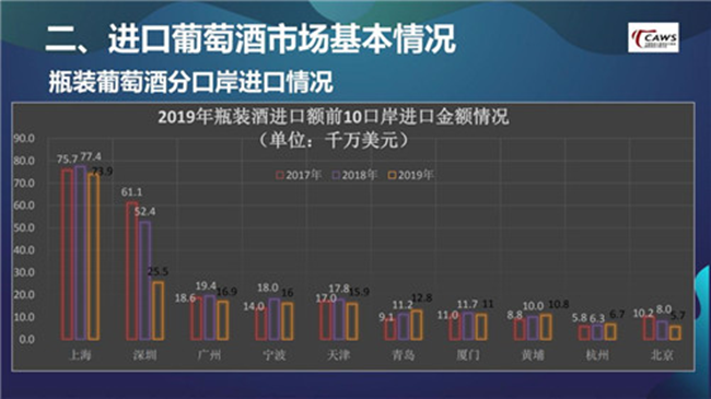 在仔細(xì)分析口岸數(shù)據(jù)后就會發(fā)現(xiàn),深圳由2018年的5.24億美元,迅速下滑到2019年的2.55億美元。我認(rèn)為這與2018年,深圳口岸由于種種原因進(jìn)口了大量的高端酒、奢侈酒有關(guān)。進(jìn)一步去想,2019年整個大盤下跌15%,受高端酒、奢侈酒的影響較大,整個市場其實(shí)并沒有受到過多沖擊。