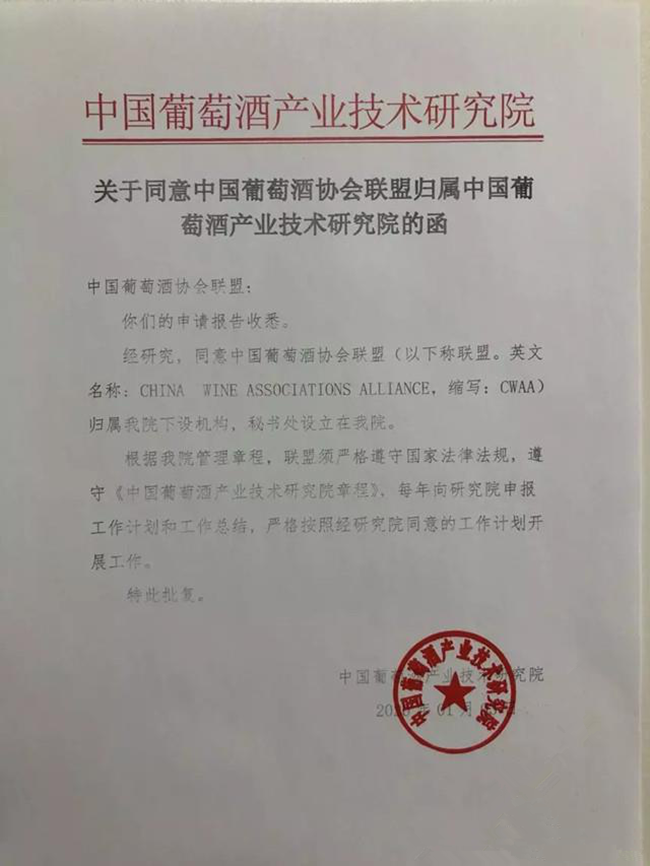 為了進一步推動聯盟工作,營造更加良好的工作環境和合理合法的開展工作,近日,中國葡萄酒產業技術研究院審批通過中國葡萄酒協會聯盟歸屬中國葡萄酒產業技術研究院領導,秘書處設立在中國葡萄酒產業技術研究院。今后聯盟工作將在中國葡萄酒產業技術研究院的直接領導下開展工作,報備工作計劃和工作總結。