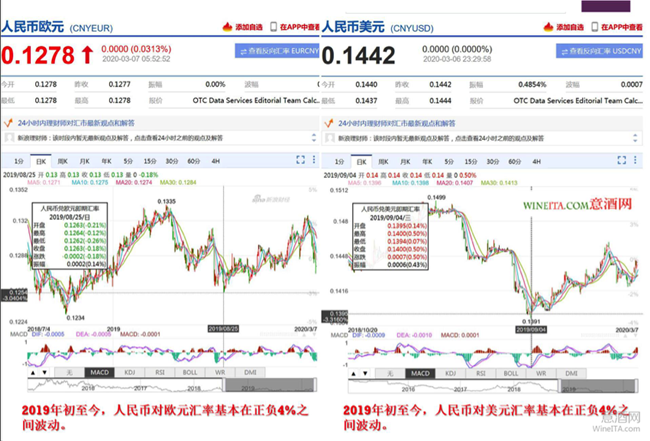 意酒網(wǎng)搜索了人民幣對(duì)主要葡萄酒生產(chǎn)國(guó)的匯率。發(fā)現(xiàn)2019年以來(lái),人民幣對(duì)美元和歐元匯率一直在正負(fù)4%的幅度內(nèi)波動(dòng)。但是從2017年初至今,人民幣對(duì)阿根廷比索的匯率升值達(dá)到300%,從2019年初至今,人民幣對(duì)阿根廷比索的匯率升值達(dá)到200%。原來(lái)時(shí)因?yàn)閰R率的大幅度波動(dòng),導(dǎo)致阿根廷葡萄酒的進(jìn)口價(jià)格大幅度下跌。這種匯率變動(dòng),短期看對(duì)阿根廷葡萄酒價(jià)格有利,但是從長(zhǎng)期看,阿根廷葡萄酒蘊(yùn)含較大風(fēng)險(xiǎn)。