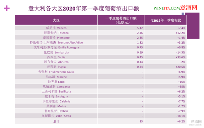 • 意大利葡萄酒2020年第一季度出口達(dá)15億歐 各大區(qū)出口實(shí)力一覽