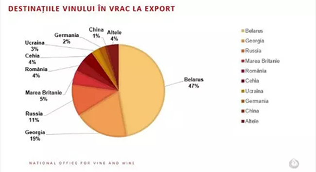 白俄羅斯、格魯吉亞以及俄羅斯進口的葡萄酒總量占摩爾多瓦出產散裝葡萄酒總量的77%。格魯吉亞散裝葡萄酒出口增長(+34%),捷克共和國和中國的進口量保持穩定,而德國(-55.3%)、羅馬尼亞(-43.7%)、烏克蘭(-43.5%)以及白俄羅斯(-2.7%)的進口量有所下降。