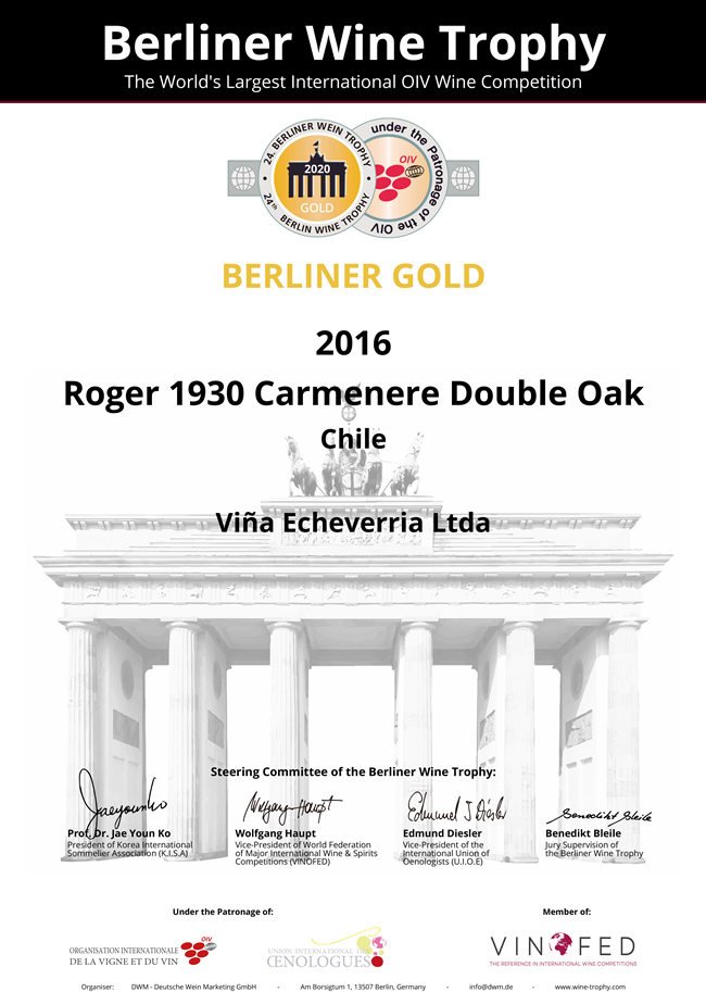 (羅吉爾1930-佳美娜——2020柏林葡萄酒大獎賽金獎 榮譽(yù)證書)