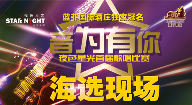 由東莞市藍菲酒業有限公司獨家冠名的,夜色星光音樂餐吧主辦的《音為有你》夜色星光首屆歌唱大賽全面啟動,初賽于8月9日-11日在廣州大道北佳潤廣場盛大舉行!來自五湖四海的100多個音樂人“音”為愛好而相聚在一起,拿起麥克風,唱歌給你聽!在夜色星光中用音樂發聲!這夜,舞臺為他們而設,我們,為他們而來。