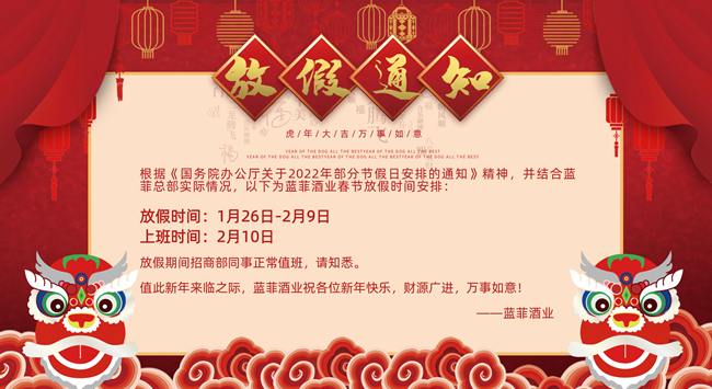 新年將至| 藍菲酒業向廣大經銷商恭賀新春!