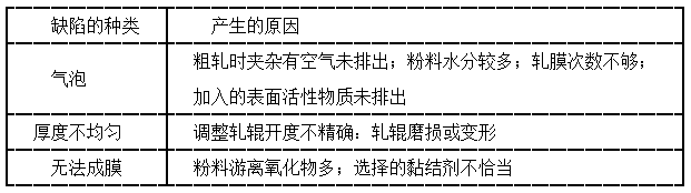 表1 軋膜成型坯體的主要缺陷及產(chǎn)生原因